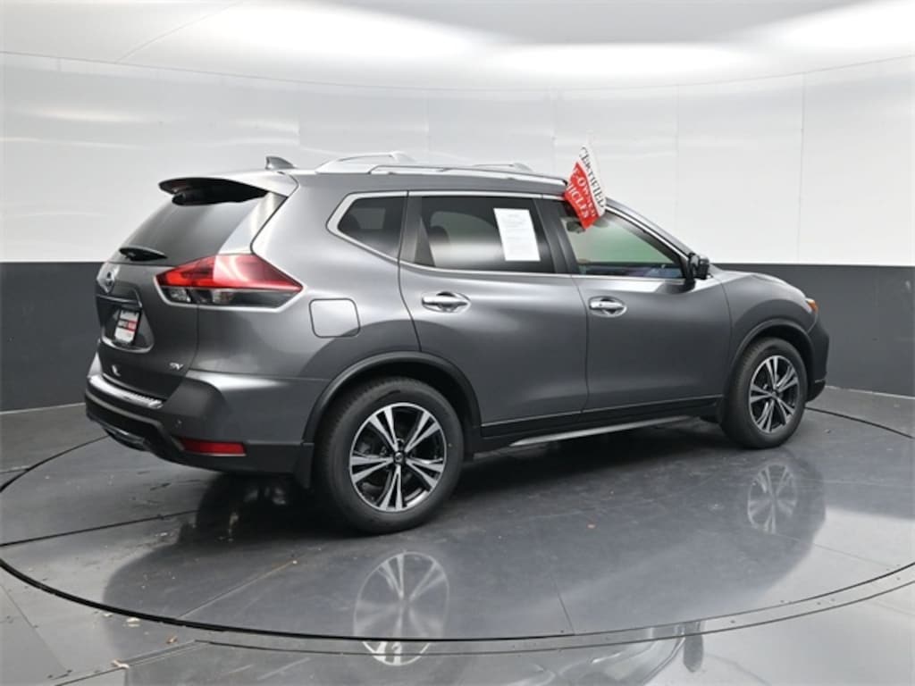 Gray 2019 Nissan Rogue SV FWD CVT with Xtronic 2.5L I4 DOHC 16V 18" Aluminum Alloy Wheels, Blind Spot Warning, Brake assist, Electronic Parking Brake, Front dual zone A/C, Heated Front Bucket Seats, Heated Leather-Wrapped Steering Wheel, Intelligent Aroundview Monitor (I-AVM), Intelligent Cruise Control, Memory Driver Seat & Outside Mirrors, NissanConnect featuring Apple CarPlay and Android Auto, Power driver seat, Power Liftgate, Premium Package, ProPILOT Assist, Radio: AM/FM/CD/AUX NissanConnect w/Navigation, Remote keyless entry, Steering Assist.