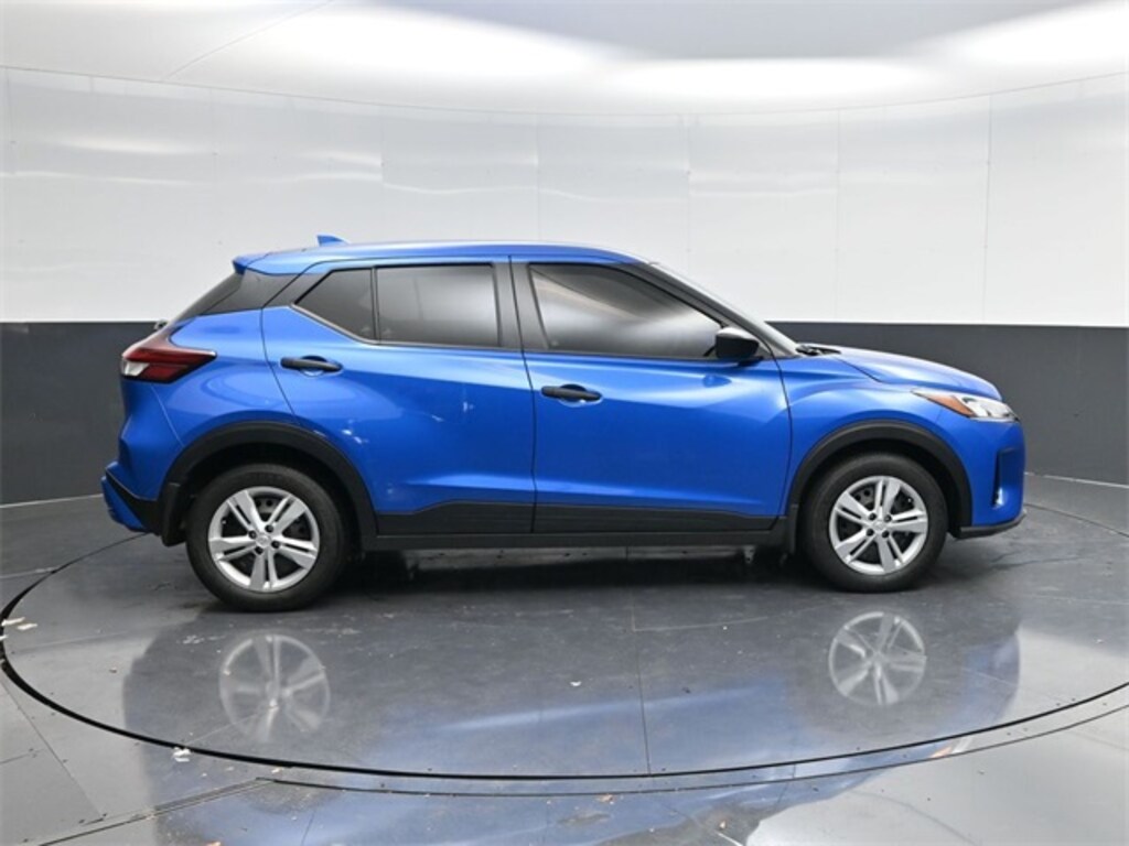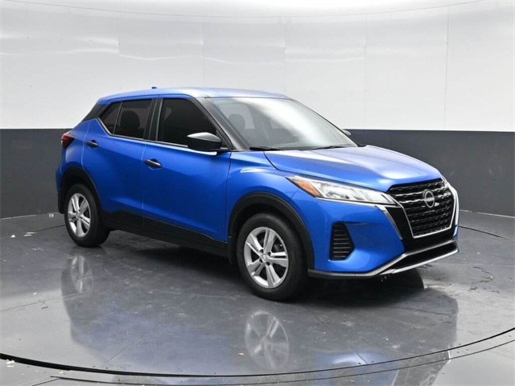 Blue 2024 Nissan Kicks S FWD CVT with Xtronic 1.6L 4-Cylinder DOHC 16V Apple CarPlay/Android Auto, Blind Spot Warning, Brake assist, Power windows, Rear Parking Sensors, Remote keyless entry.